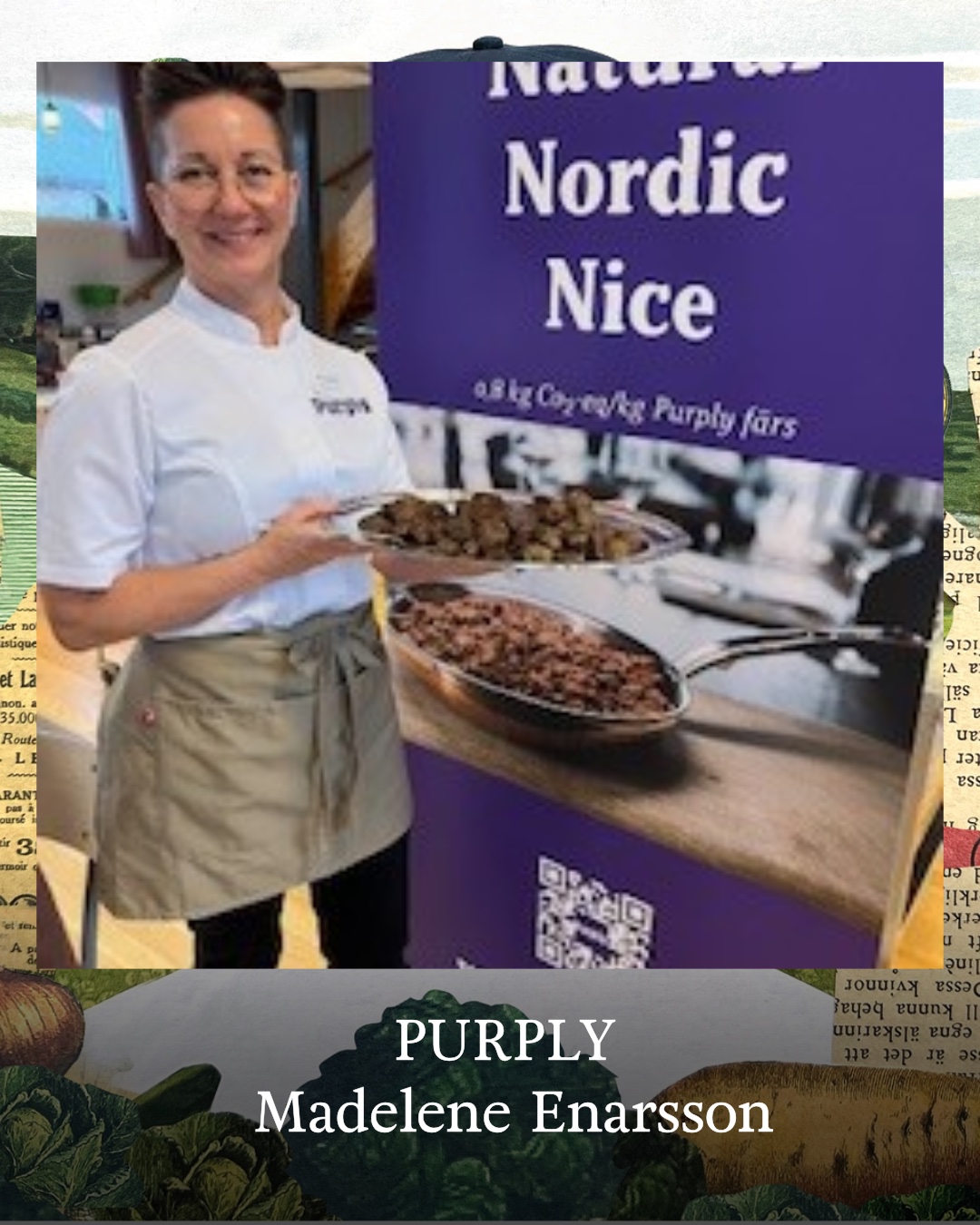 Purply är en färs med ett klimatavtryck cirka hundra gånger lägre än rött kött, men med ett näringsinnehåll liknande vanlig köttfärs. Färsen baseras på Ciona, en marin art som växer och kan odlas i Norden – utan foder, sötvatten och pesticider. Produktionen bidrar dessutom positivt till marina ekosystem. Purply kan blandas med vanlig köttfärs och även utgöra grunden i helt nya produkter.
